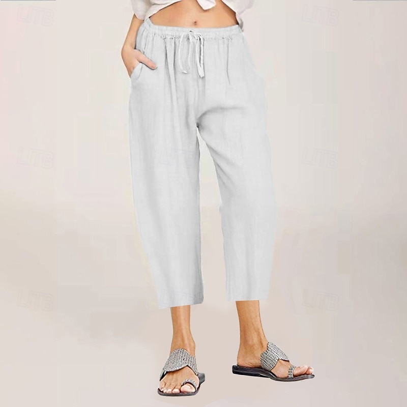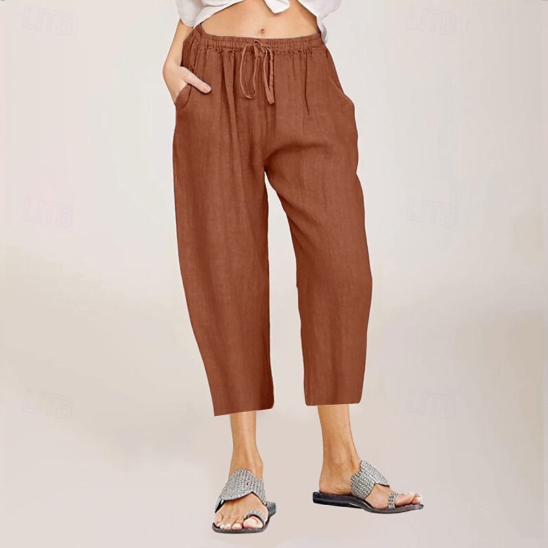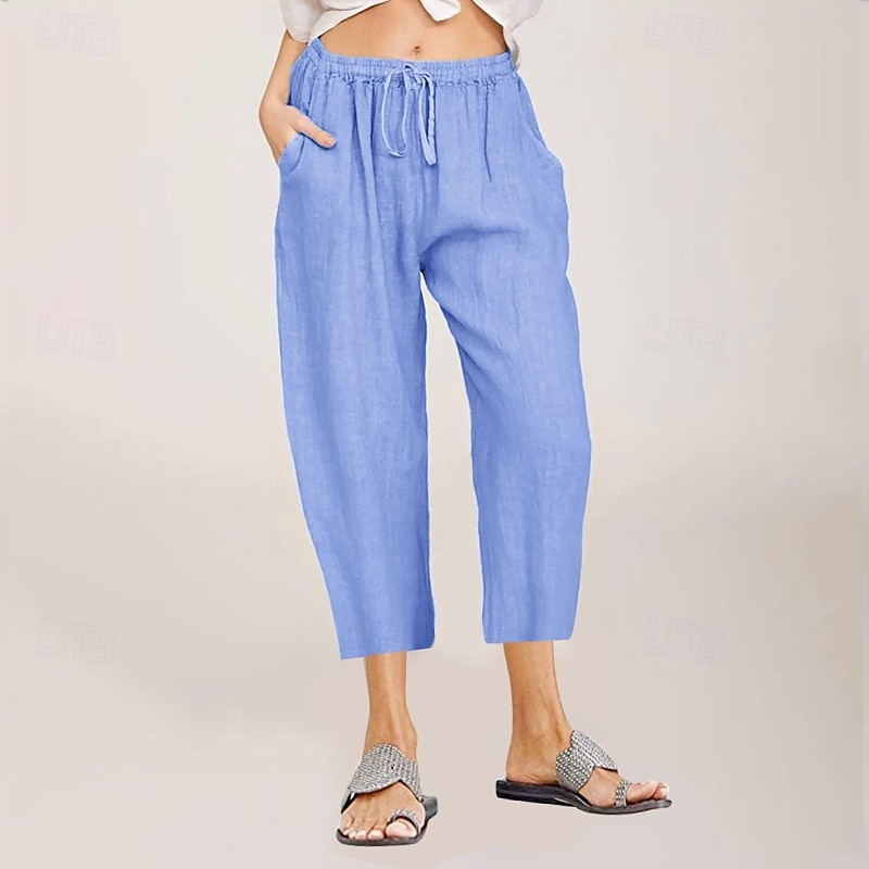 More information about Women's Cotton Linen Pants Capri Pants Slacks Streetwear Casual Calf-Length Natural Plain Pocket Elastic Drawstring Design Comfy Outdoor Outdoor Vacation Holiday claret Peacock Blue River Blue Light