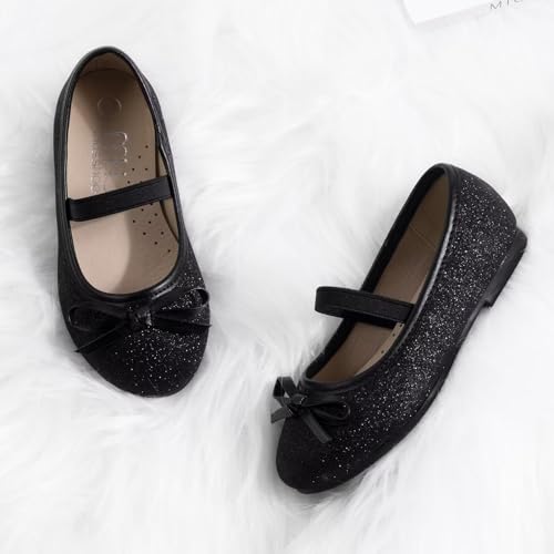 HOT ! MUSSHOE Girls Dress Shoes Mary Jane Shoes for Girls Glitter Ballet Flats with Bow for Party, Wedding, Performance, Prom (Toddler/Little Kids/Big Kids)