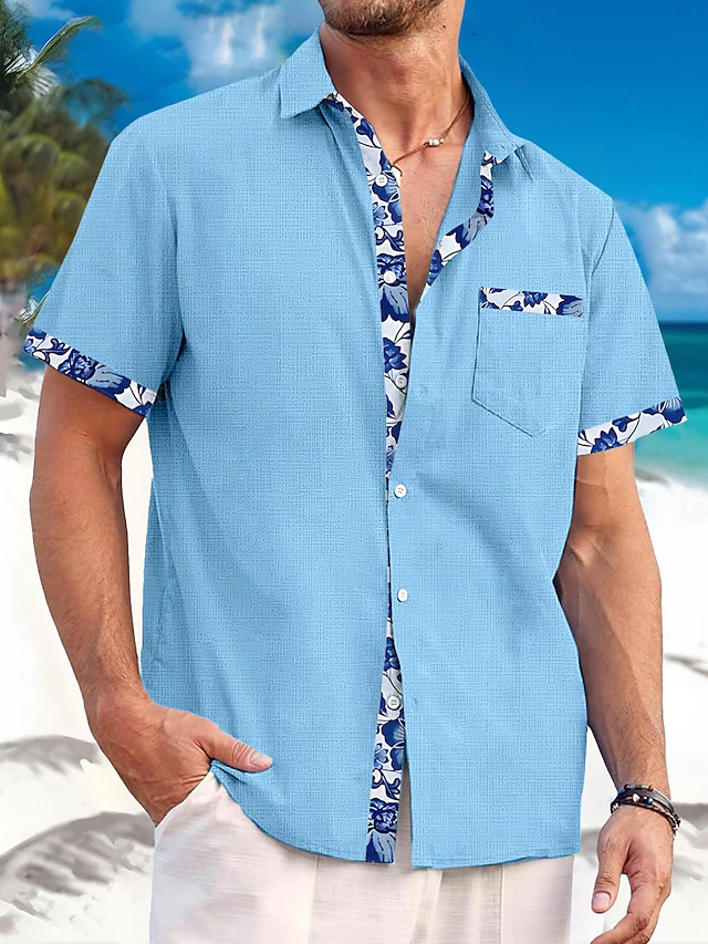 More information about Men's Linen Shirt Summer Shirt Beach Wear Casual Shirt Button Up Shirt Plain Vacation Curise Black White Pink Blue Short Sleeve Lapel Spring & Summer Clothing Apparel Front Pocket