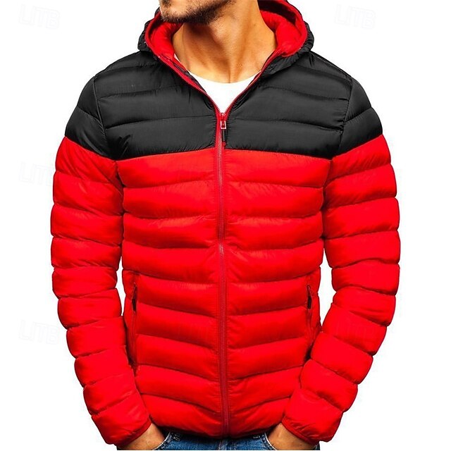 More information about Men's Puffer Jacket Quilted Jacket Transition Jacket Padded Jacket Pocket Polyster Fleece lined Vacation Daily Wear Date Regular Fashion Casual Comfortable Thermal Warm Fall & Winter Color Block