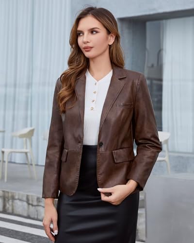 • 【Premium Quality Leather】The women blazer is made from a premium, super soft PU leather. A slim fitting design will highlight your figure.To let you feel soft and delicate PU leather texture.
