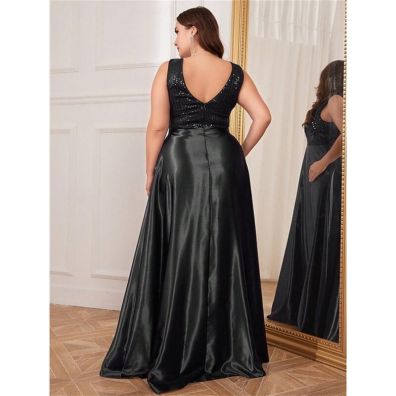 A-Line Plus Size Dresses Elegant Curve Dress Formal Wedding Floor Length Sleeveless V Neck Satin V Back with Pleats 3