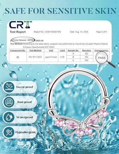 • 🧸【Stainless Steel Septum Ring】These hypoallergenic septum clicker are made of healthy stainless steel, copper, and high-quality cubic zircon, free of lead and nickel, making them very safe septum rings surgical steel for sensitive skin. So you can wear the septum hoop nose ring with confidence and feel the charm brought to you by these septum nose ring hoop.