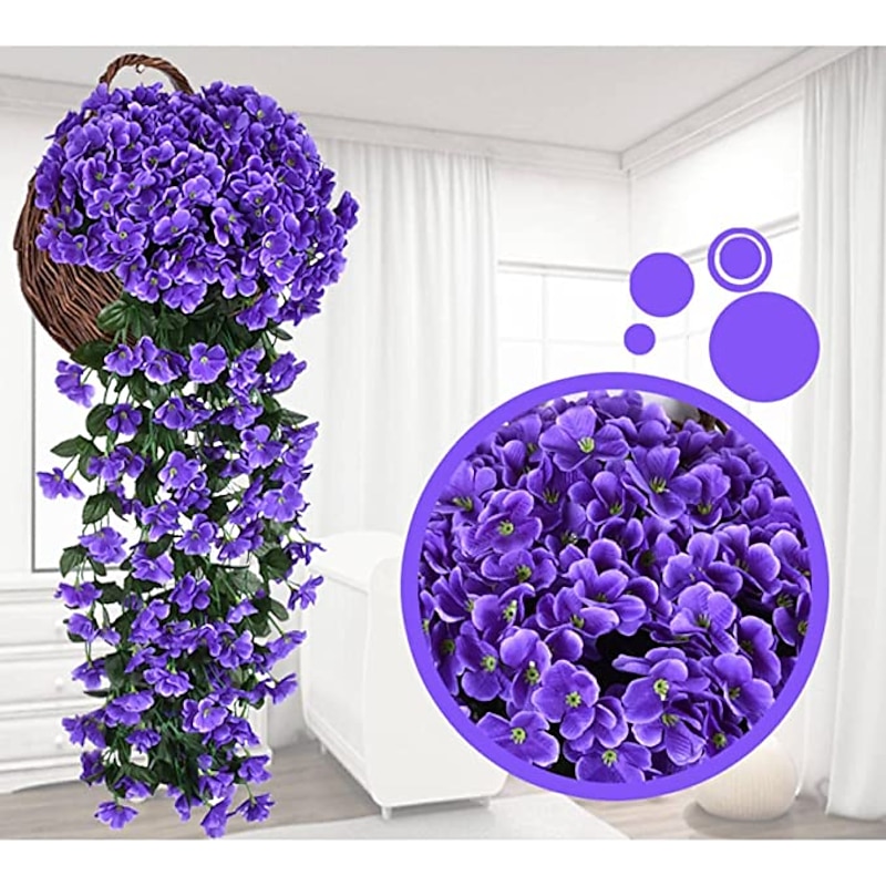 sizzling ! Vivid Artificial Hanging Orchid Bunch Simulation Flower Vine Violet Hanging Flower Vine Wall Hanging Orchid Hanging Basket Flower Balcony Home Decoration Flower Wall For Wedding Garden Decoration