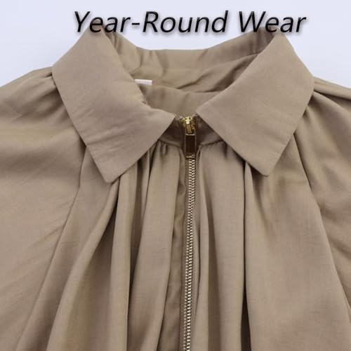 Balloon Sleeve Jacket, Casual Outerwear, Women's Puffed Bomber Jacket, Collar Zip Front Pleated Shirts 3