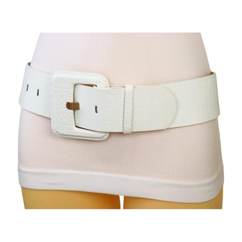 More information about Women White Wide Fashion Belt - Hip Waist Faux Leather Band Hip Big Square Buckle Fit S M z243