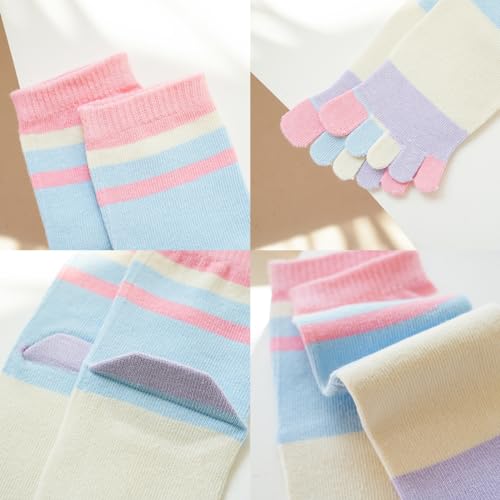 Kids Cotton Toe Socks, Five Finger Socks Rainbow Striped Crew Socks for Children 2-10 Years, 6 Pairs 5