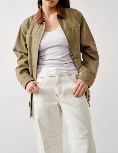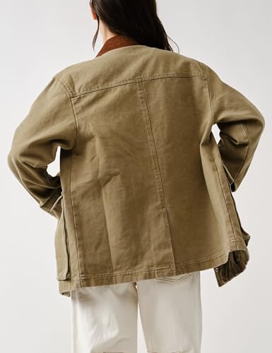 • Feature: Women's long sleeve jacket, features contrast brown lapel collar, drop shoulders, front button down, two side patch pockets, women loose fit jacket, women zipper closure cargo jacket, perfect blend of fashion and utility, a must - have piece for any wardrobe