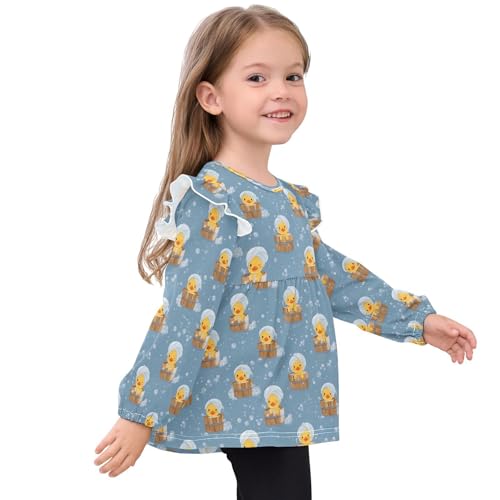 Duckling Bathing Girls Shirts Cotton Long Sleeve Ruffle Toddler Tee Tops 4