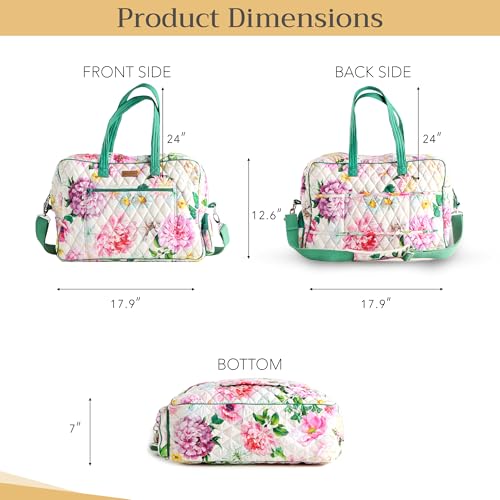 Maison d' Hermine Weekender Bags for Women Cotton Quilted Duffel Overnight Luggage Weekend Bag for Men Gym Sports Gifts Travel Business Travellers Family Trip (Pivoine) 1