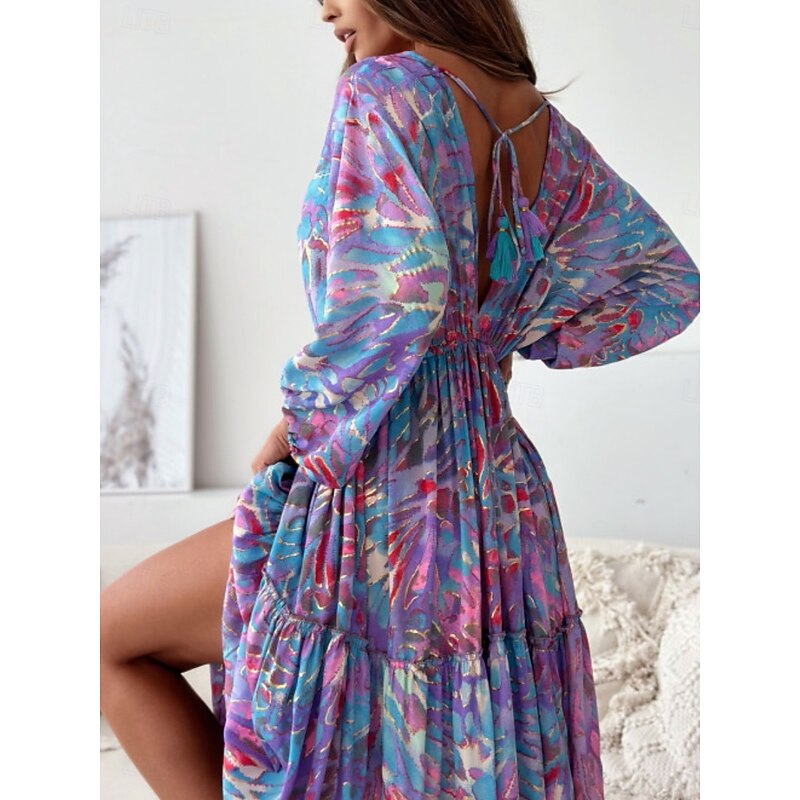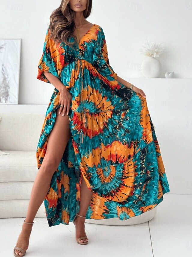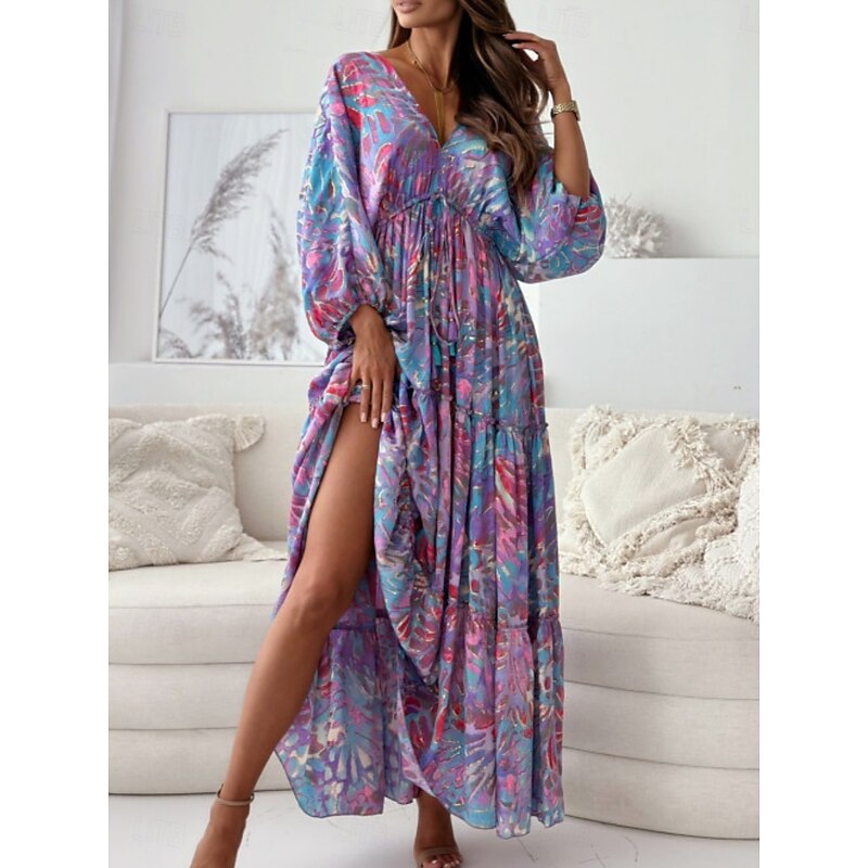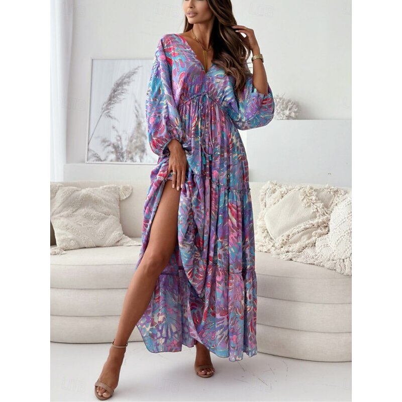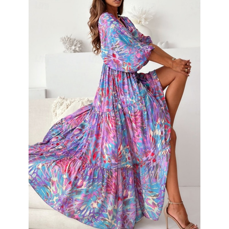 HOT ! Women's Maxi Dress Casual Dress Swing Dress Boho Chic Dresses Bohemia Casual Boho Vacation Daily Loose Fit Floral Tie Dye 3/4 Length Sleeve V Neck Light Purple Green Summer Spring