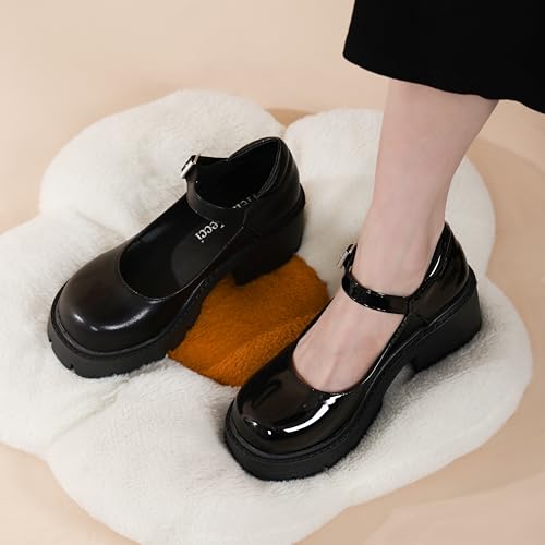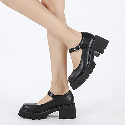 CouieCuies Mary Jane Women Chunky Heel Platform Pumps Buckle School Shoes Black Gothic Shoes 6