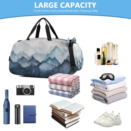 YETTASBIN Sport Travel Duffel Bag for Girls Boys, Watercolor Mountain Large Waterproof Weekender Overnight Bag, Detachable Shoulder Strap Gym Bag with Shoe Compartment & Wet Pocket 5