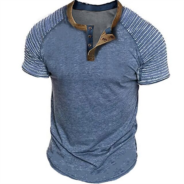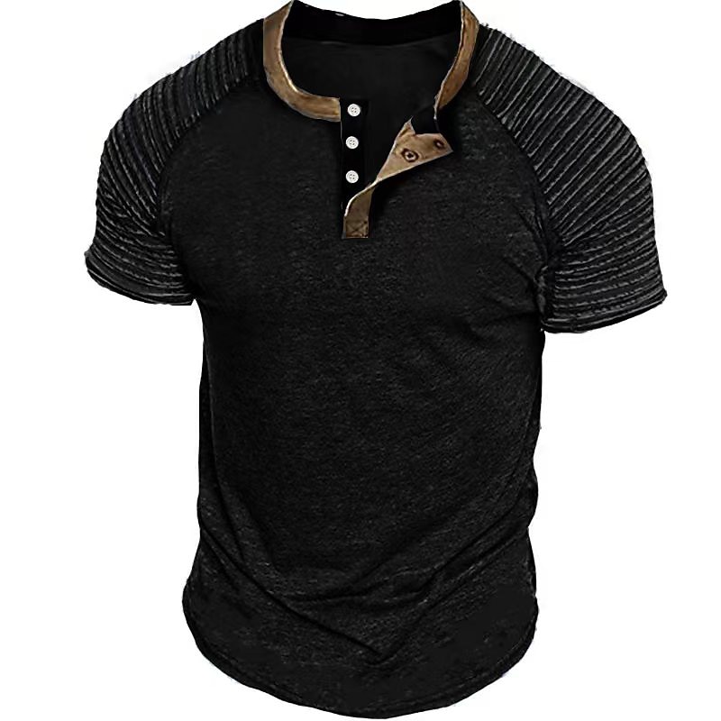 More information about Men's Henley Shirt Plain Slim Pleated Henley Street Vacation Short Sleeves Pleated Sleeve Clothing Apparel Designer Basic Modern Contemporary