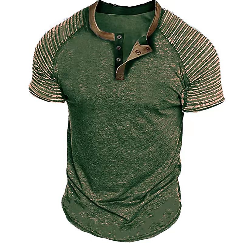 Men's Henley Shirt Plain Slim Pleated Henley Street Vacation Short Sleeves Pleated Sleeve Clothing Apparel Designer Basic Modern Contemporary