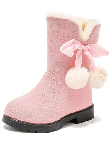 Girls Winter Boots Princess Snow Bow High-Top Boots Mid-Calf Thick Warm Snow, Suitable For Little Girls 6