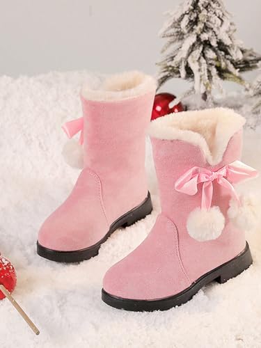 Girls Winter Boots Princess Snow Bow High-Top Boots Mid-Calf Thick Warm Snow, Suitable For Little Girls 4