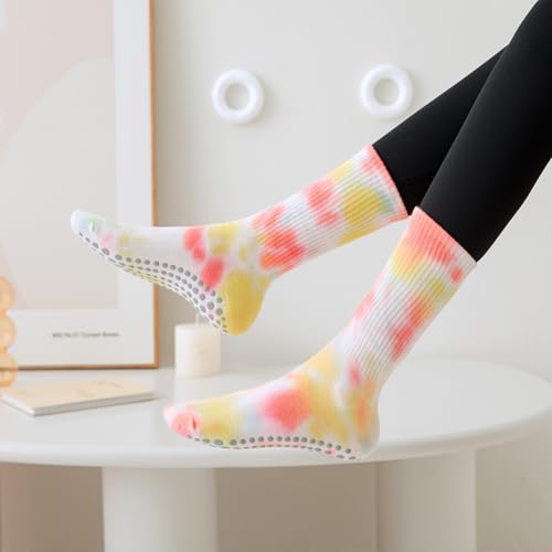 HOT ! 4 Pairs Women Yoga Socks with Grips,Tie Dye Non Slip Grip Crew Socks Colorful Grippy Socks for Barre Ballet Barefoot Workout