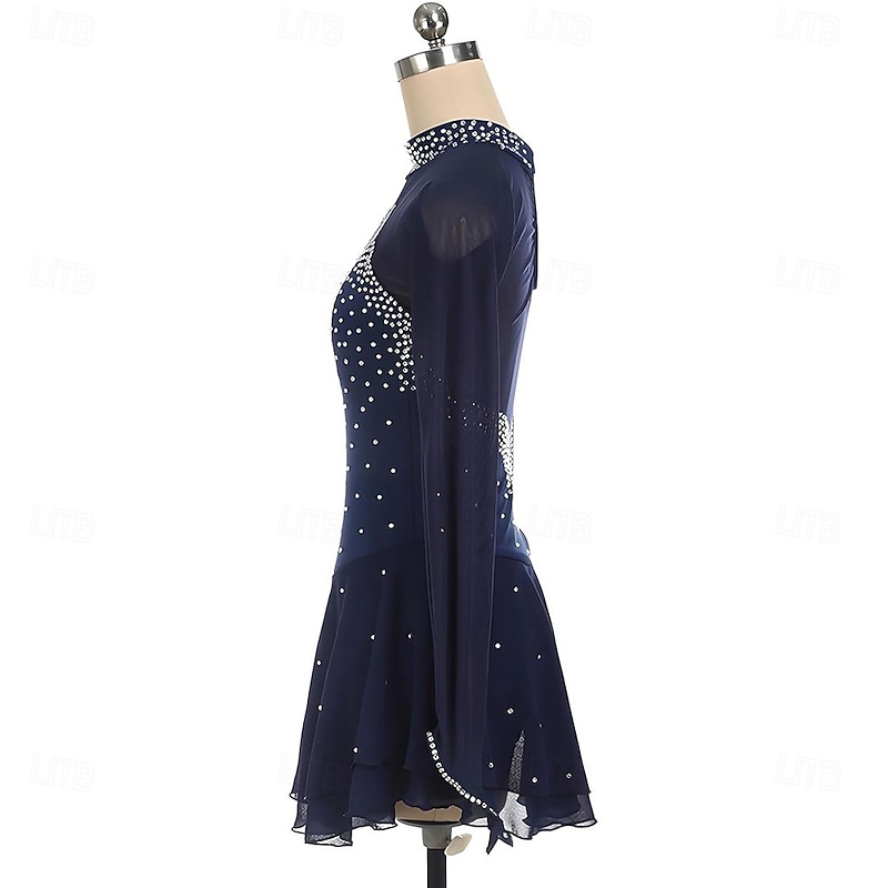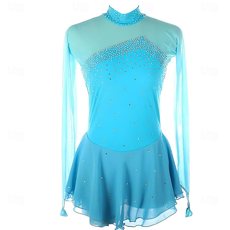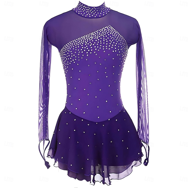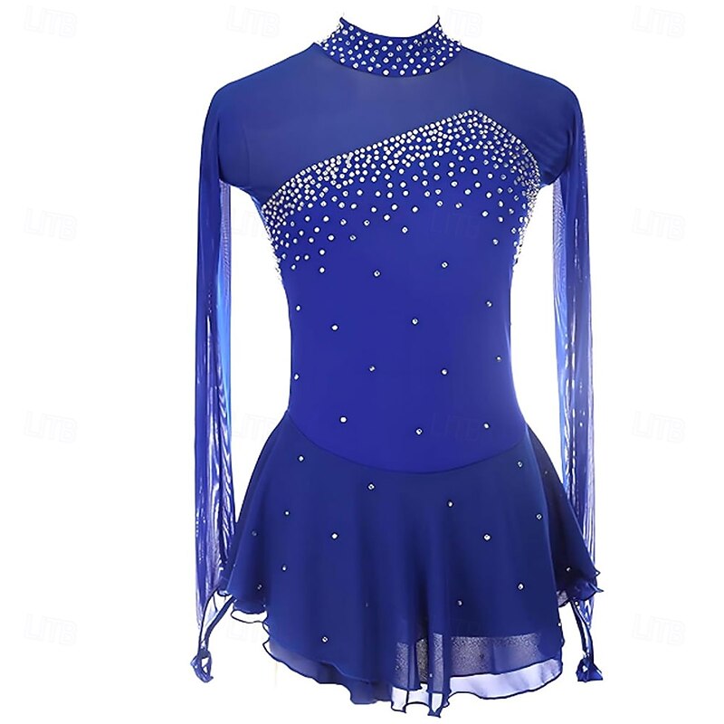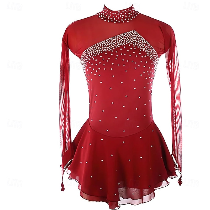 More information about Figure Skating Dress Mesh Rhinestone Turtleneck Long Sleeves Figure Skating Competition Performance Costume