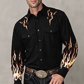 Men's Flame Shirt Western Shirt Cowboy Shirt Long Sleeve Vintage Retro Outdoor Casual WorkWear Spring Fall Turndown Front Two Pockets Linen Like Shirt Button Up Shirts Black 1 Black 7