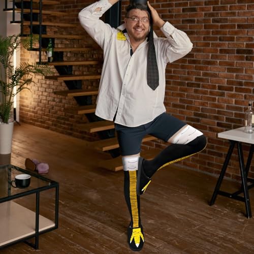 • Funny Chicken Leg Socks-The front of the novelty sock is a complete pattern of chicken feet, and the design of chicken feet footprints is on the bottom of the sock, making every angle look attractive and crazy, which is a funny gift for Christmas, white elephant gifts for adult, gag gifts, Birthday gifts, Halloween gifts, Thanksgivings Day costume.