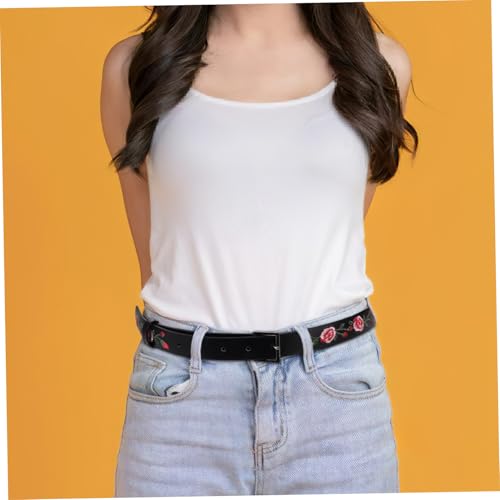 More information about Floral Embroidered Rose Pu Belt with Square Buckle Adjustable Flower Sash for Dresses and Jeans Stylish Waist Belt for Fashionable Outfits