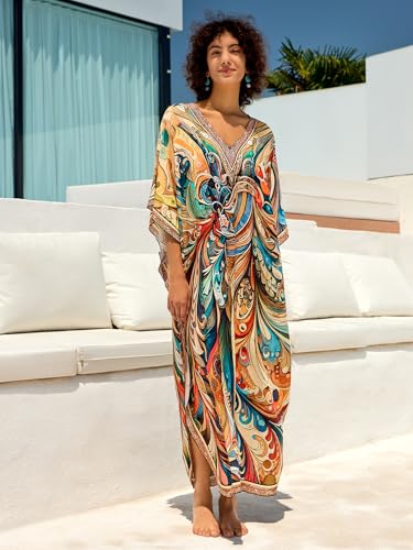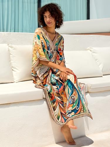 Kaftan Dresses for Women Side Split Caftan Bathing Suit Cover Up Casual Long Beach Loungewear Dress 1