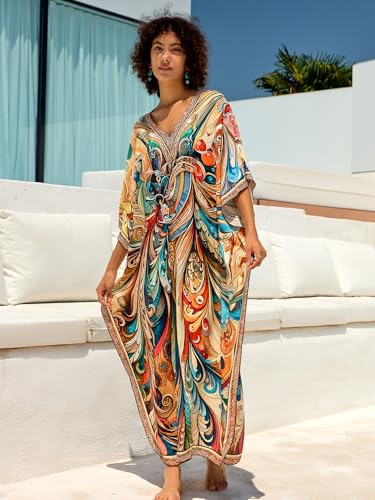 Kaftan Dresses for Women Side Split Caftan Bathing Suit Cover Up Casual Long Beach Loungewear Dress 7