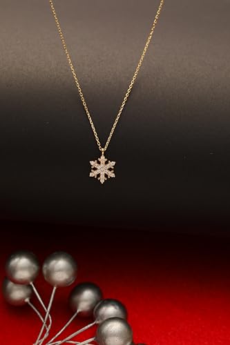 HOT ! Snowflake Necklace, 14K Real Gold Snowflake Pendant, Tiny Gold Snowflake Necklace, Handmade Snowflake Pendant (Only Pendant, Yellow Gold)
