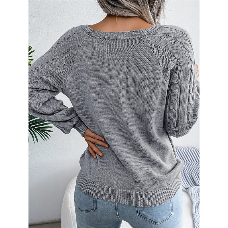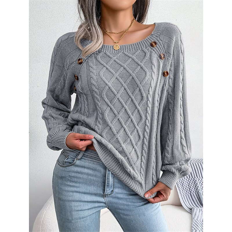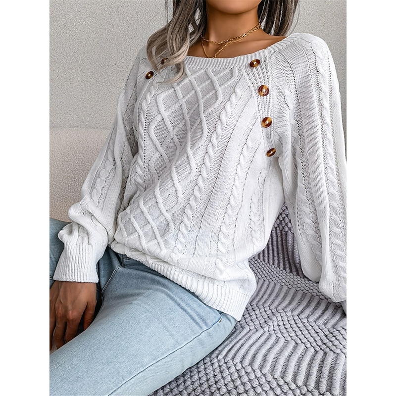 More information about Women's Sweater Pullover Sweater Jumper Casual Soft Pure Color Ribbed Square Neck Buttons Knitted Long Sleeve Regular Tops Knit Outdoor Daily Weekend White Khaki Fall Winter