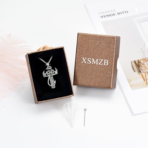 XSMZB Cross Cremation Jewelry Urn Necklace for Human Ashes Fish Hook Memorial Urn Pendant Deer Antler Cross Ashes Holder Keepsake Jewelry 7