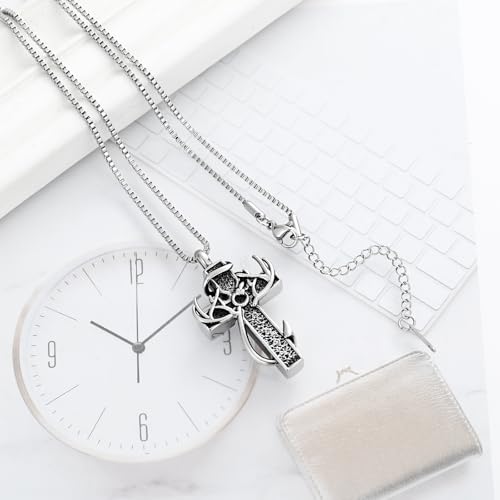 XSMZB Cross Cremation Jewelry Urn Necklace for Human Ashes Fish Hook Memorial Urn Pendant Deer Antler Cross Ashes Holder Keepsake Jewelry 5