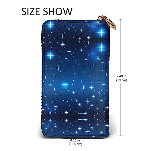 HOT ! Leather Wallet 7.48 x 4.13 in - Stylish and Durable Wallet for Women with Multiple Compartments and Zipper Design Blue star pattern Pattern