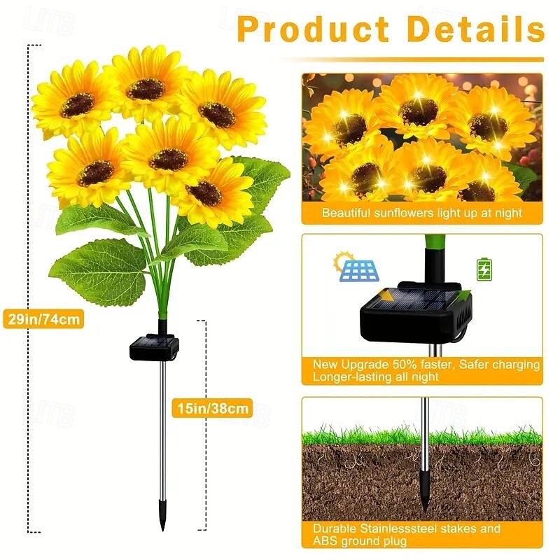 $43.99 - 2Pcs LED Solar Outdoor Lights 6 Heads Sunflower Garden Lights Patio Lights Fairy Lights for Mattress Pillow Home Villa Yard Park Walkway Landscape Decoration 2025. Shop for cheap Landscape Lights online? Buy at lightinthebox.com on sale today!