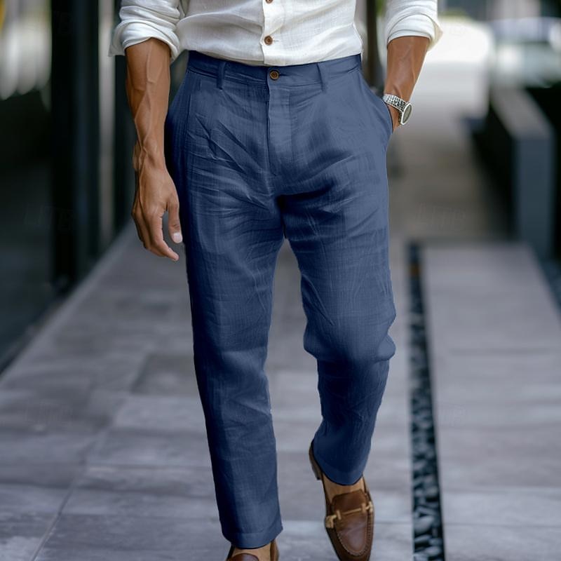 $27.99 - Men's Linen Pants Trousers Dress Pants Summer Pants Buttons Straight Leg Plain Comfort Breathable Full Length Business Daily Streetwear Stylish Black White 2025. Shop for cheap Business online? Buy at lightinthebox.com on sale today!