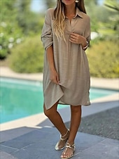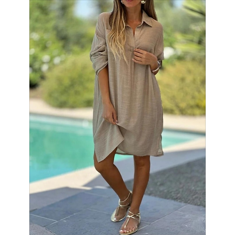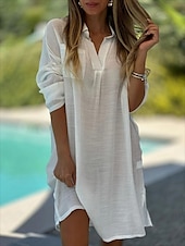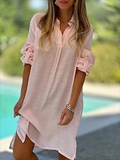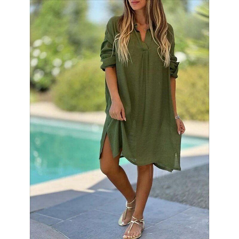 More information about Women's Mini Dress Cotton Linen Dresses Basic Vacation Daily Regular Fit Plain Long Sleeve V Neck White Pink Green Khaki Summer Spring