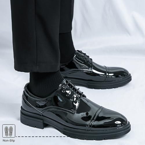 Men's Patent Leather Platform Cap Toe Formal Oxfords Classic Round Toe Non Slip Lug Sole Lace-Up Comfortable Dress Derby Tuxedo Shoes for Business Wedding Party 6