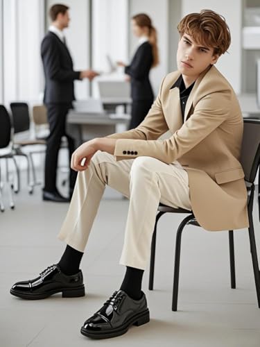 • 【CLASSIC BUSINESS DESIGN】-This men's patent leather Oxford shoe is designed with round head lacing, which is simple and generous, suitable for formal occasions and shows elegant gentleman style