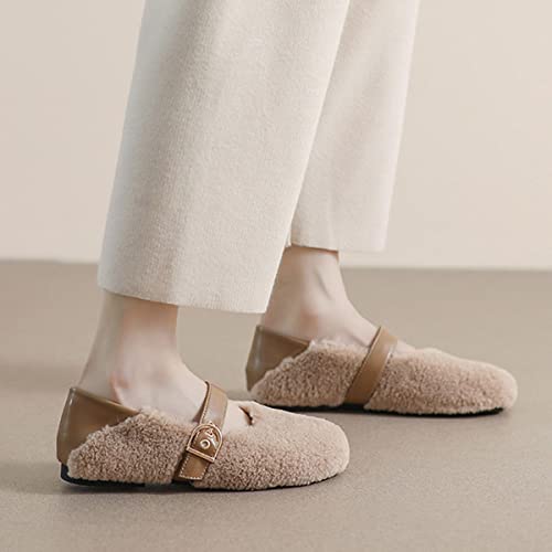 JOEupin Women's Slip On Fuzzy Mary Jane Flats Warm Loafers House Slippers Home Ballet Flats 6