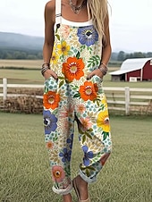More information about Women's Jumpsuit Active Floral Sleeveless Straight with Pocket Vacation Street Loose Fit White Yellow Pink Summer