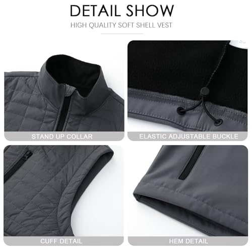 • LIGHTWEIGHT& BREATHABLE: Men's Softshell vest is made of 100% polyester, windproof outer soft shell and fleece lining inside, the double layer fabric is both warm and durable, providing good protection in cold weather