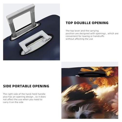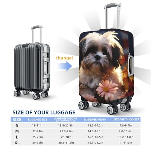 Travel Luggage Cover Elastic Anti-Scratch Suitcase Protector Washable Travel Suitcase Cover Shih Tzu Dog And Flowers Luggage Protector Fits 18-32 Inch Suitcase 5