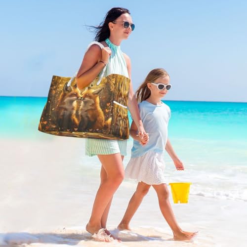 HOT ! Two Foxes Kissing Beach Bag & Travel Tote Bag Large Sandproof with Zipper Closure, Wet Pouch for Swim Gym Travel, Lightweight Foldable Outdoor Bag