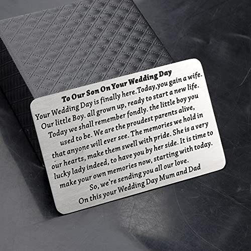 • ◆Son Wedding Gift ◆This wedding wallet card is a perfect keepsake gift to give to your son on his wedding day. Your son’s wedding day can be an emotional day and this wallet card expresses how parents may feel.