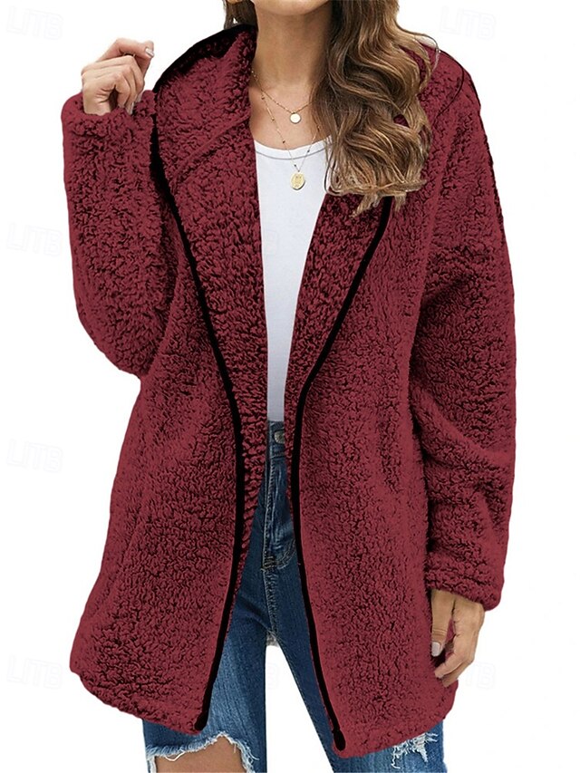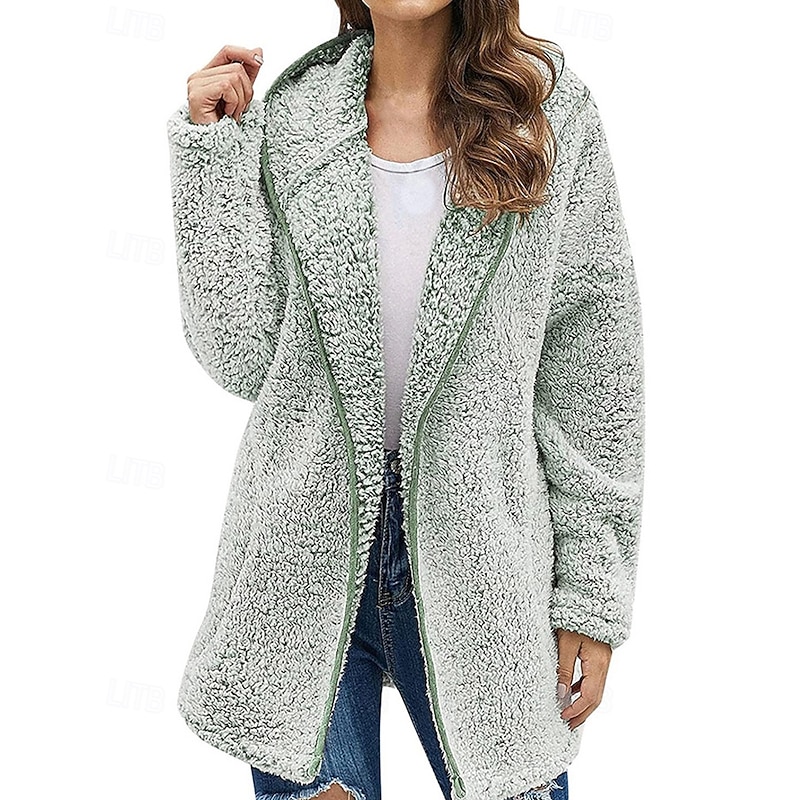 More information about Women's Teddy Coat Hoodie Jacket Warm Comfortable Zipper Casual Plain Vacation Street Going out Weekend Regular Hoodie Loose Fit Long Sleeve Outerwear Black Light Green Pink Fall Winter