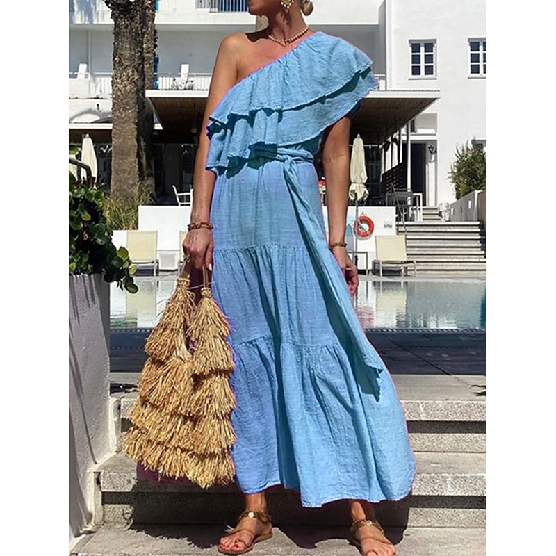 Highlights Product Selling Points: - Elegant ruffle design adds a touch of sophistication - One shoulder neckline for a trendy and fashionable look