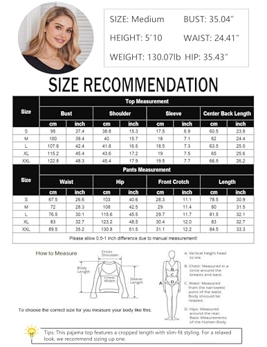 • 【Color&Size】The cute printed loungewear comes in various colors.From cute pattern to elegant floral print,there is a shirt-capri sleepwear for every personality. Available in a wide range of sizes,before you buy the pajamas set,please check the measurement chart.Tips: This pajama top features a cropped length with slim-fit styling. For a relaxed look, we recommend sizing up one.