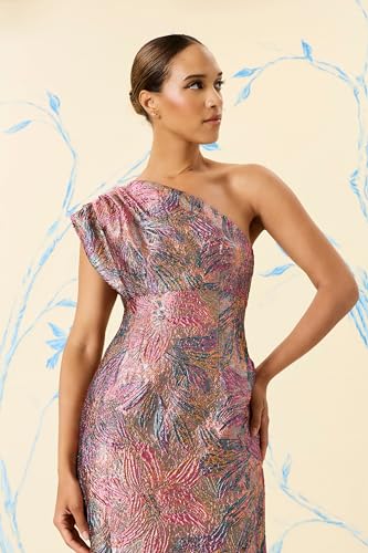 HOT ! Maggy London Women's One Shoulder Metallic Jacquard Evening Fitted Special Occasion Cocktail Dress
