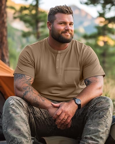 • Flattering Look: The men's classic henley tees feature with short sleeve, crewneck, front pocket and stylish button detail; The crew neck design and button details add a touch of style, making this shirt versatile enough to wear in various settings