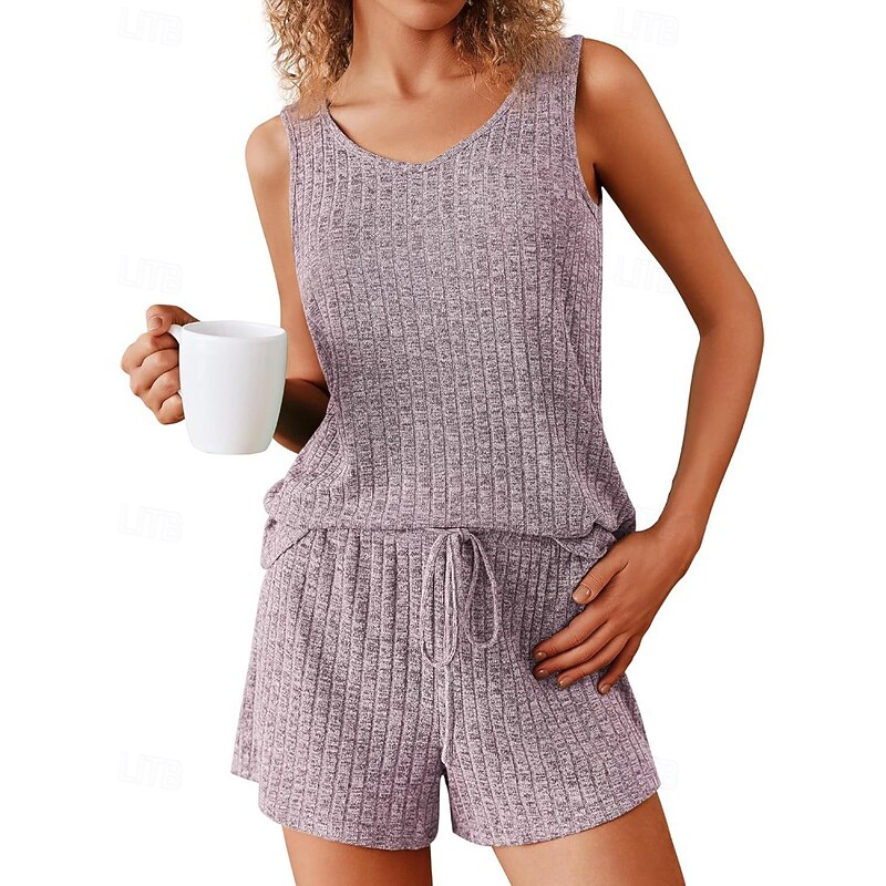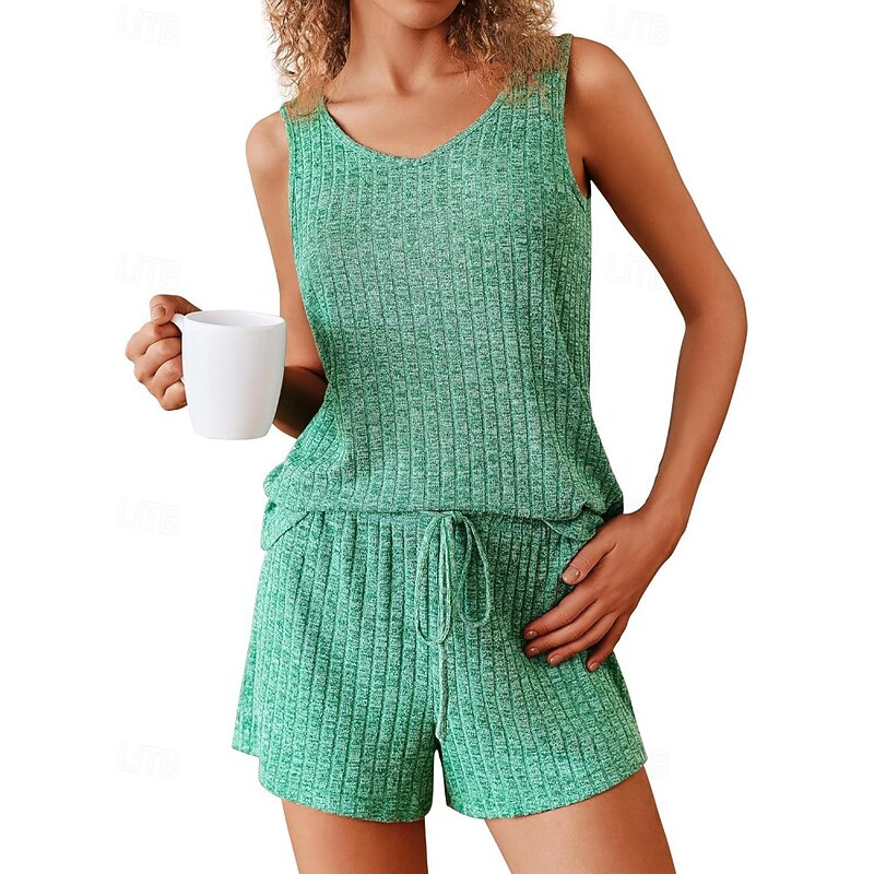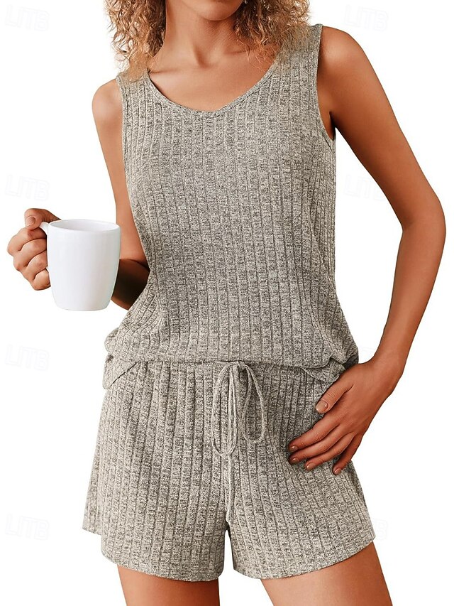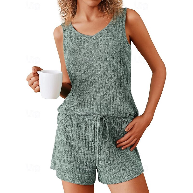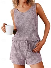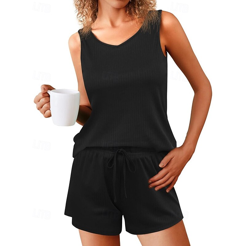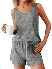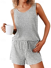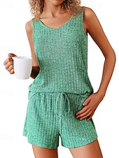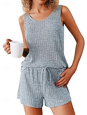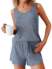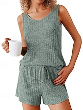More information about Women's Active Blouse Shorts Sets Sleeveless Crew Neck Solid Color Drawstring Vacation Daily Wear Black Army Green Navy Blue Summer Regular Fit